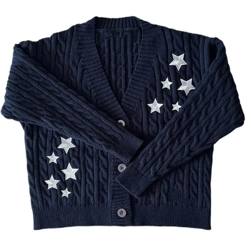 Taylor' s Midnights Cardigan Blue Embroidered Star Cable Knite Vintage